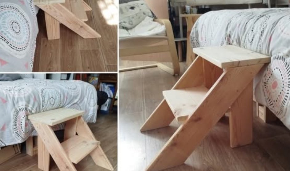 Pour cette commande, il s’agissait de répondre au besoin d’un chien un peu âgé qui n’arrivait plus à grimper près de son maître sur le lit